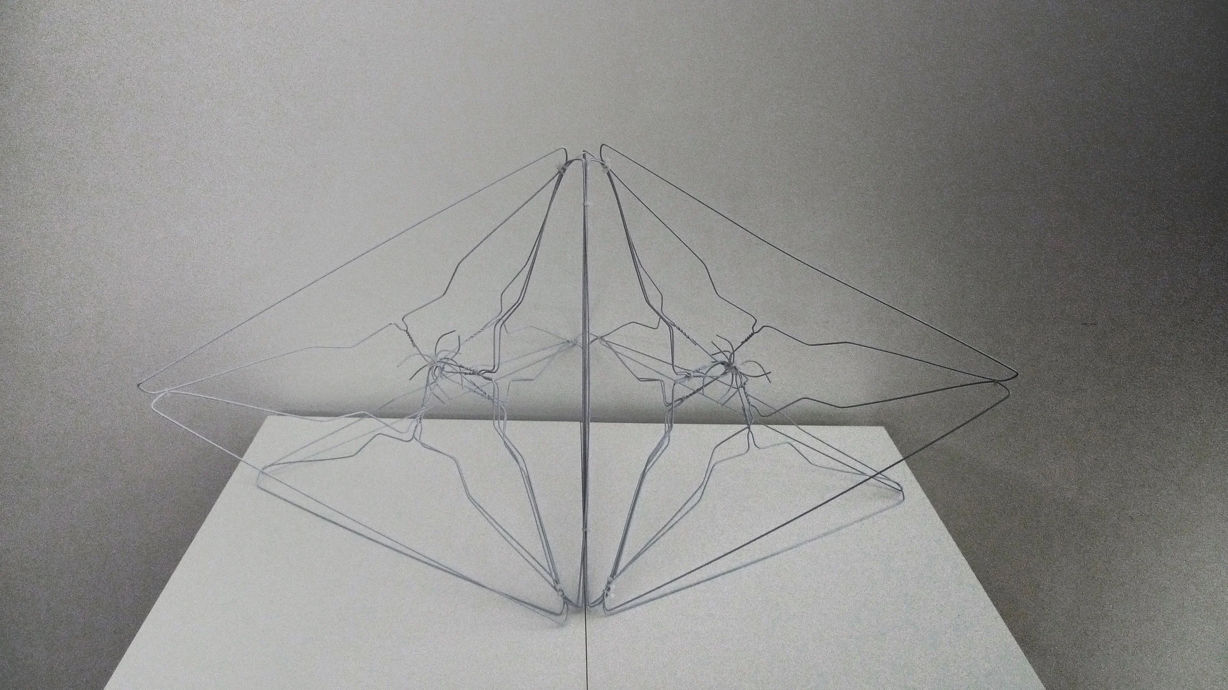 The design is modular, comprised of the hanger’s original triangle shape, rotated, and mirrored segments got assembled with zip-ties into modules. The Hanger Barn is made out of 1192 modules (21456 clothes hangers) that are joined using zip ties.